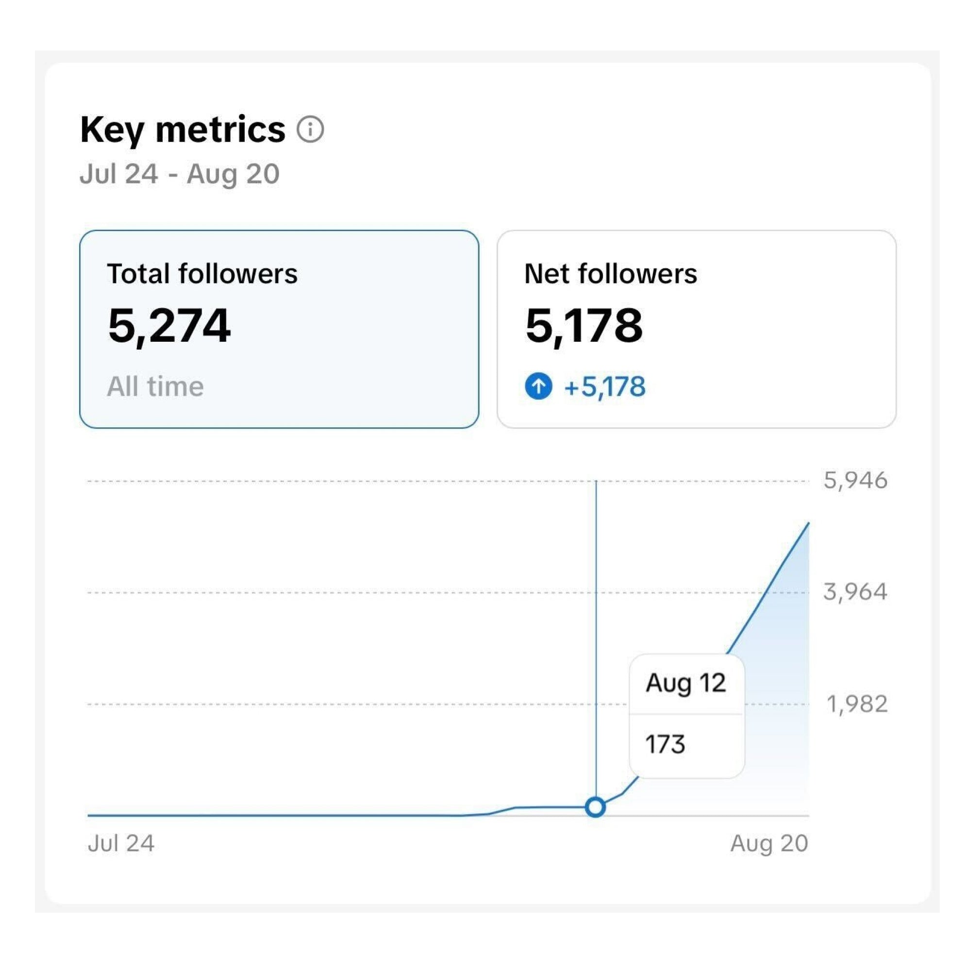 By August 20th, only 8 days later, I had already surpassed 5,000 followers and got approved for TikTok Shop for Creators this morning.