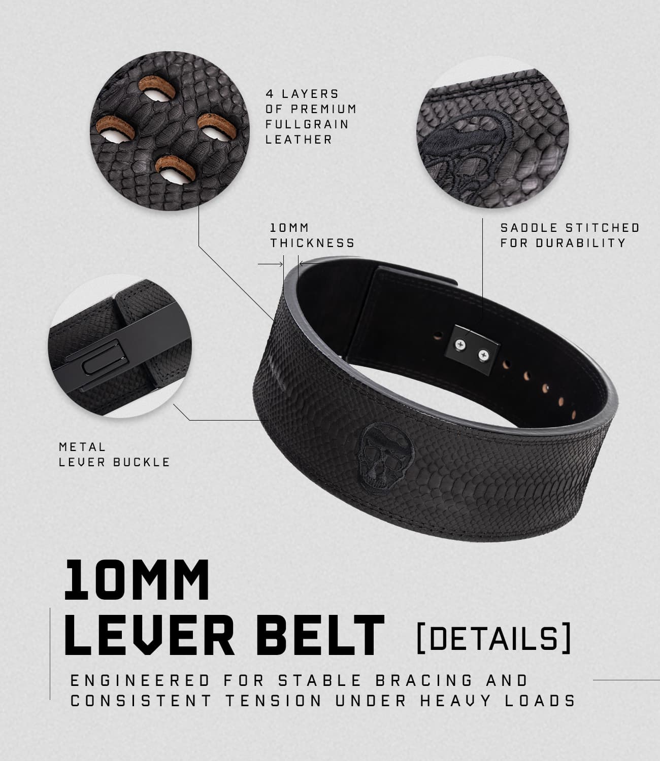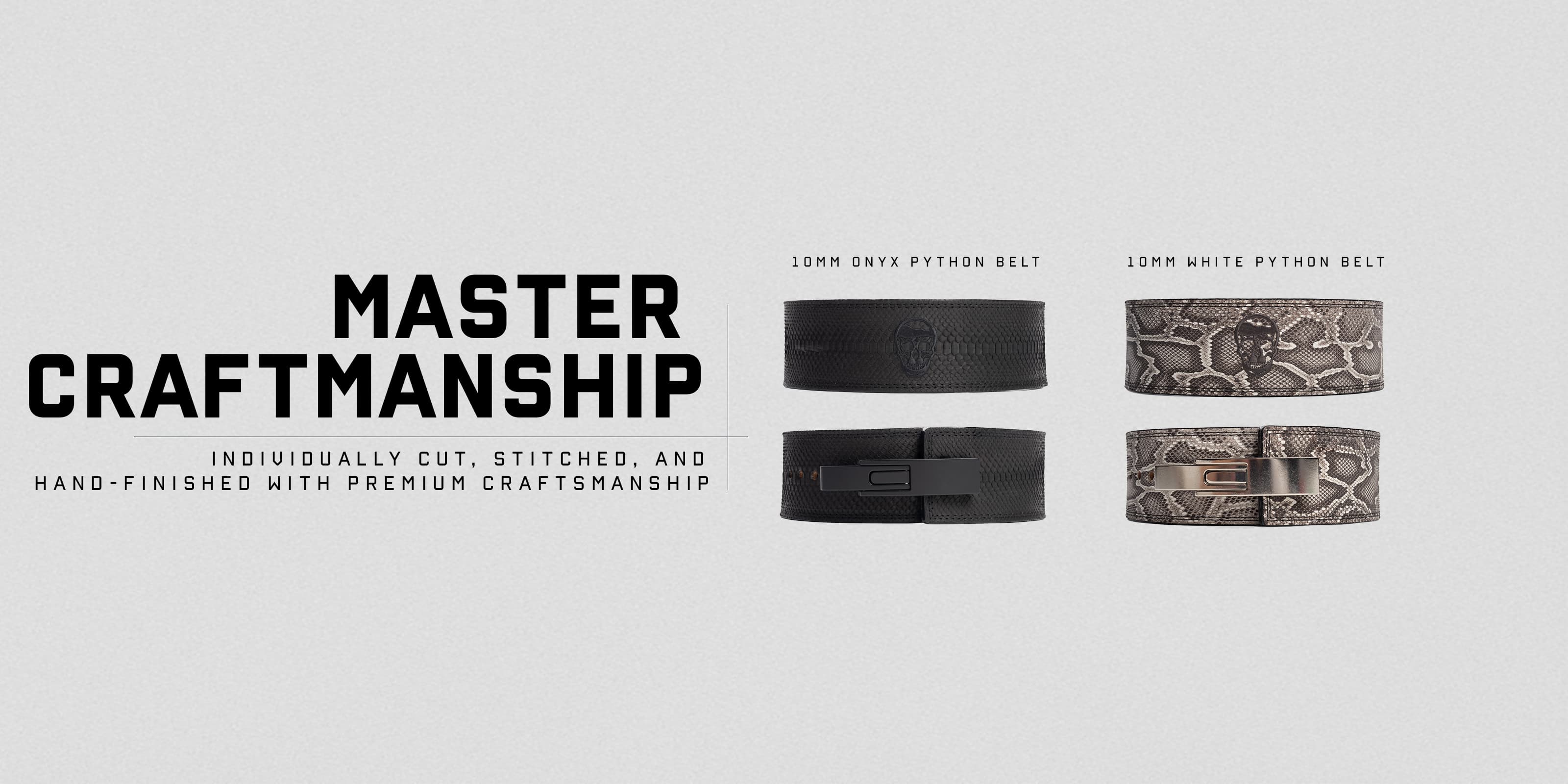 Introducing the Onyx Python Lever Belt; part of Gymreapers’ first-ever exotic belt collection. With blacked out hardware and a uniform black finish, this belt is the embodiment of stealth, luxury, and performance.