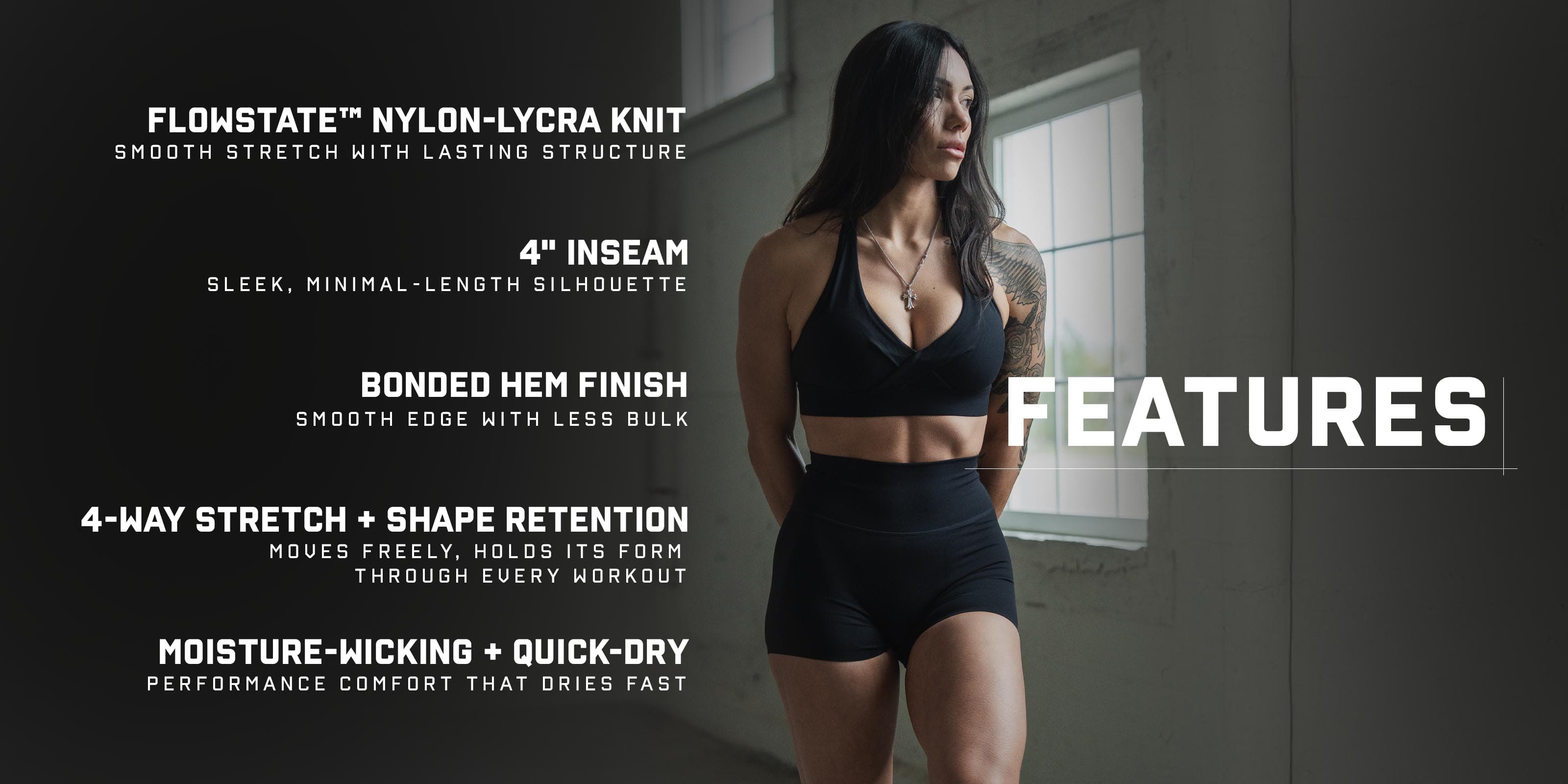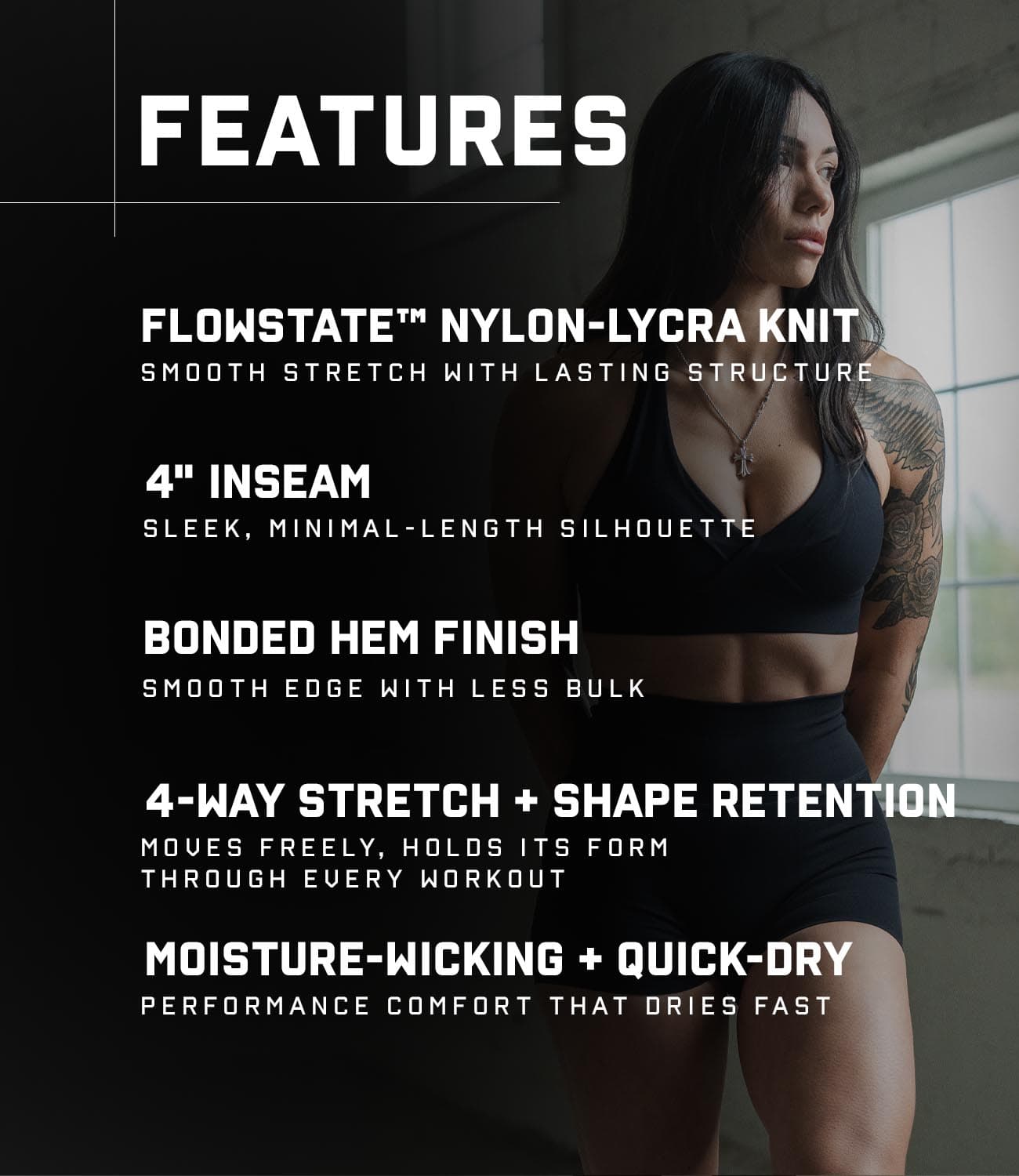 - FLOWSTATE™ performance nylon-lycra knit