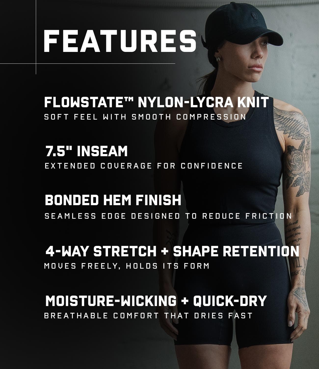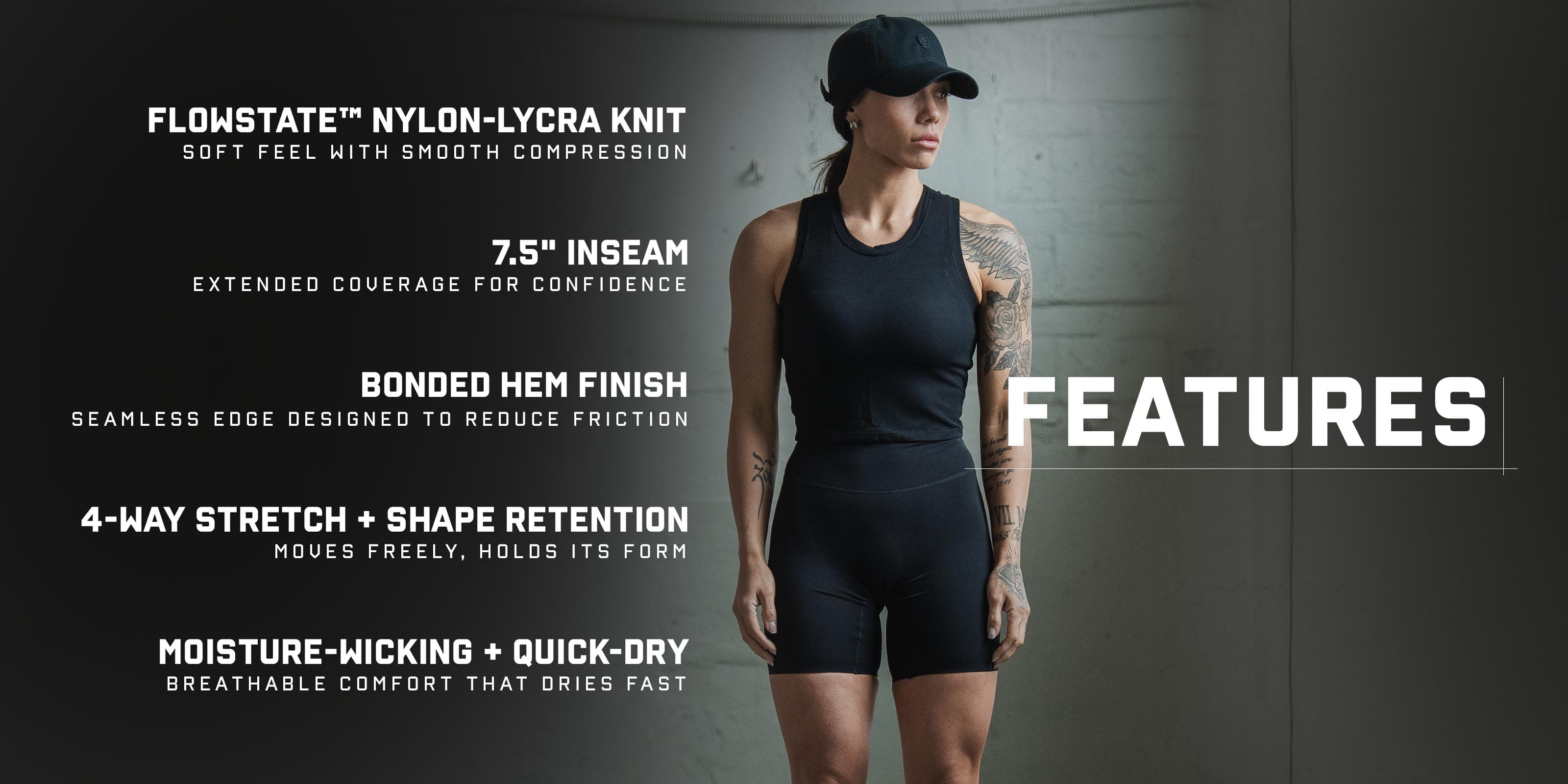 - 7.5” inseam for extended coverage and confidence