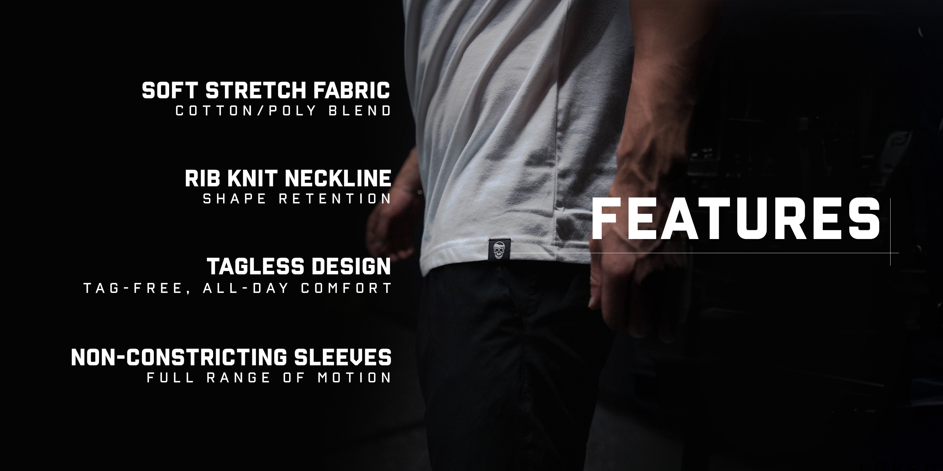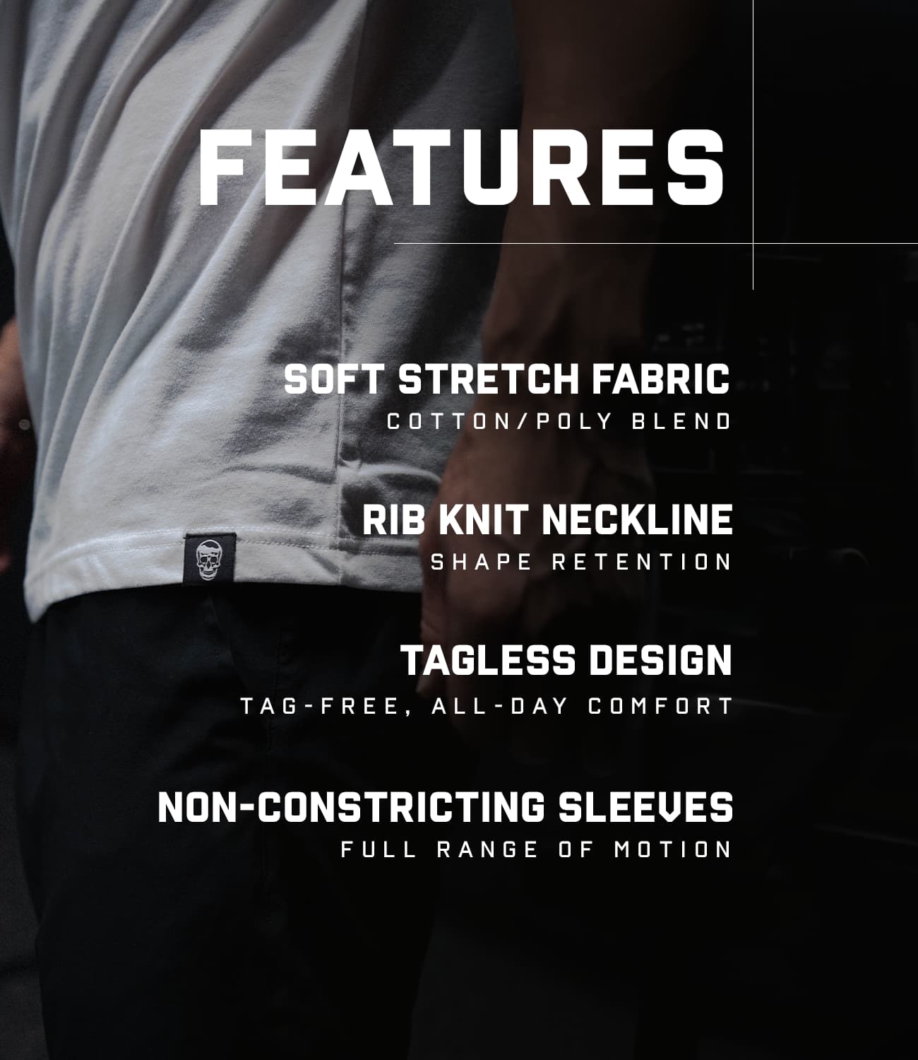 The Clip Tag Basic Tee takes our best-selling Basic Shirt and gives it a clean, new look. Made from a soft cotton-poly blend, it’s built with stretch, breathability, and an athletic fit that highlights your chest and arms while staying relaxed at the waist. Finished with a woven skull clip tag at the hem, this tee is designed for everyday wear in and out of the gym.
