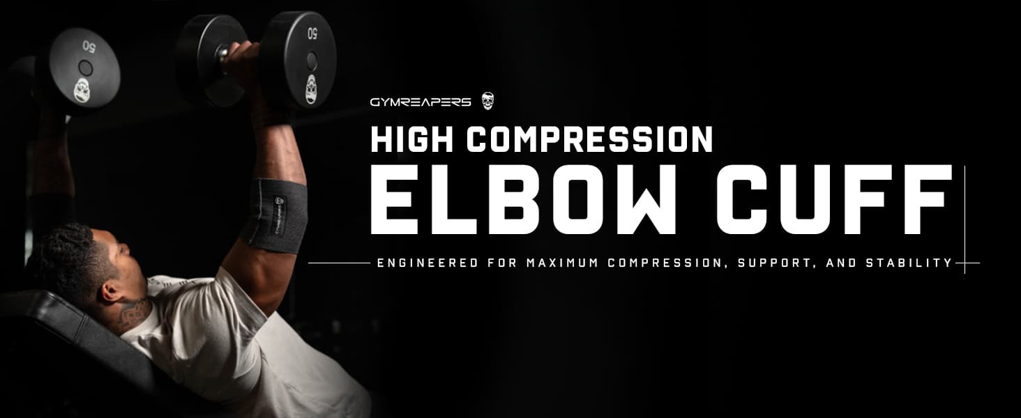 Train with confidence using our Elbow Compression Cuffs. Built from a heavy-duty elastic and cotton blend, they deliver added stability and firm compression around your elbows for a locked-in feel that won’t quit.
