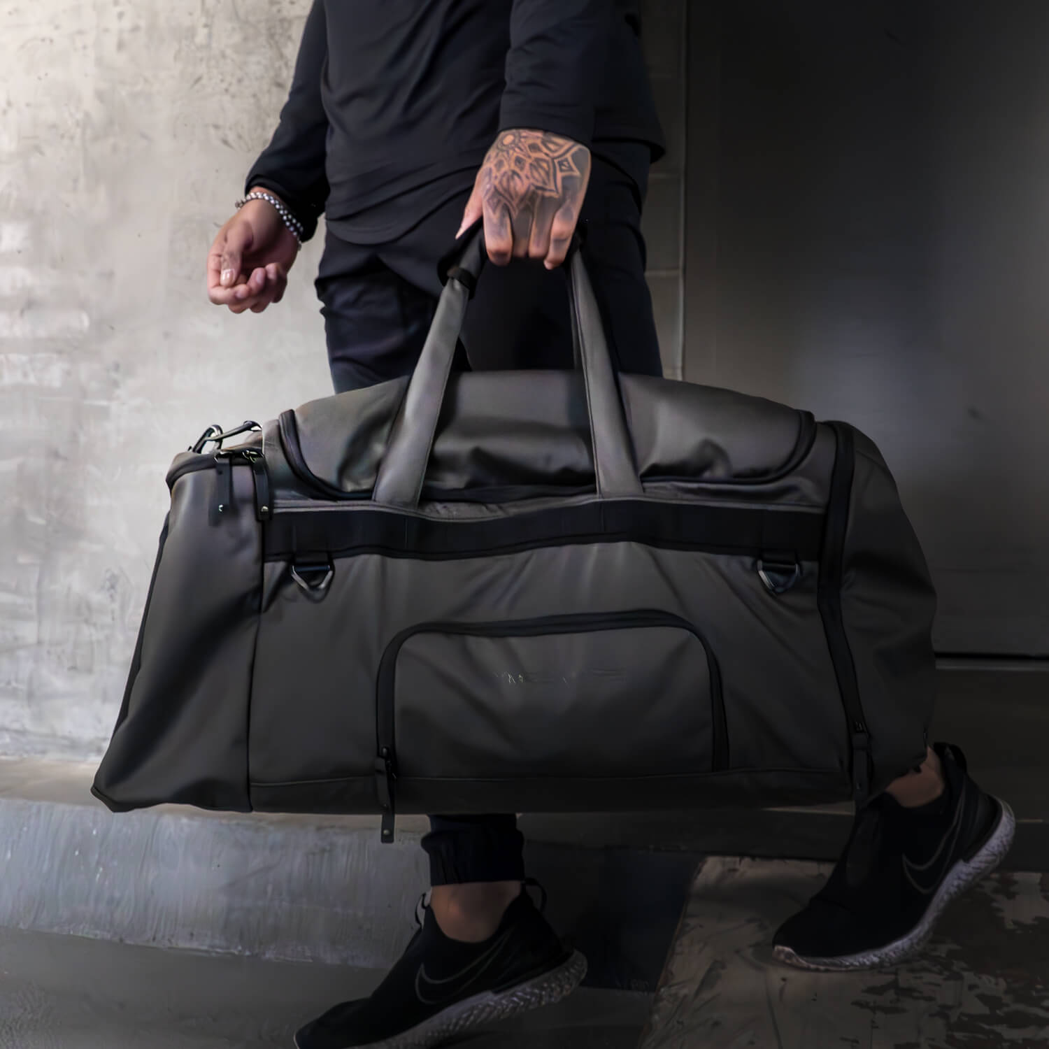 The Gravestone Duffle’s look is perfected with double-layered nylon Molle and fixed D-Ring attachments on both ends, leaving room to clip keys and your sleeve strap. Never throw your sweaty sleeves inside your bag again.
