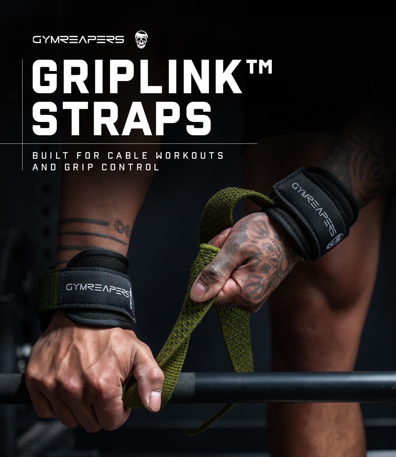 The Gymreapers Griplink Lifting Straps are built for serious lifters who want comfort, control, and versatility. Designed for both free-weight and cable training, they feature a cushioned hook-and-loop wrist cuff for quick adjustment and a 14.5-inch cotton strap extension for dependable grip support.