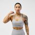 The Halo Bra blends together premium knit fibers to feel incredibly soft to the touch. Our interlock knit construction forms a dense seamless fabric that offers breathability and light to medium support. This sports bra features a scoop neckline and a strappy back design to accentuate your physique.