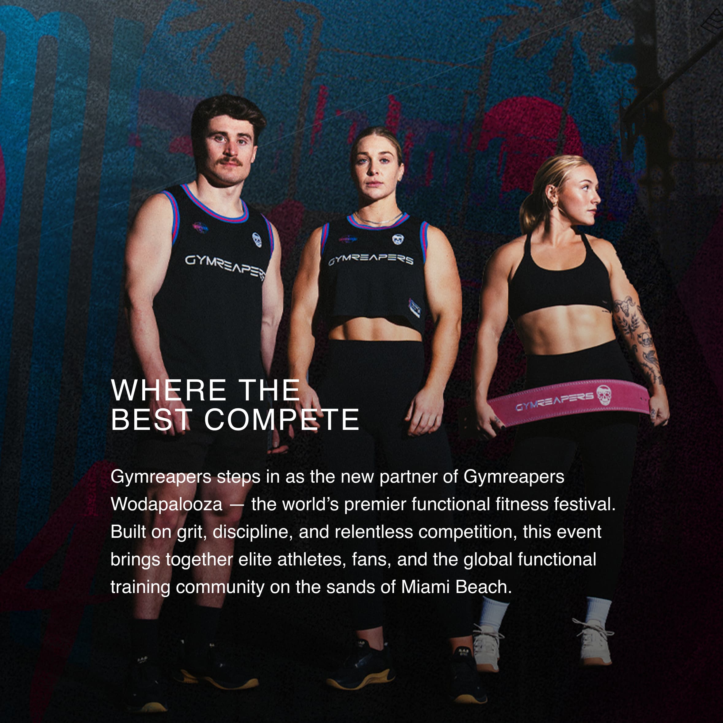 The Miami Beach Jersey is a lightweight mesh training jersey built for breathable comfort and a clean, athletic look. Made from 100% polyester mesh, it promotes airflow and unrestricted movement while maintaining a classic jersey silhouette. Miami-inspired graphics, bold “26” back numbering, and Gymreapers WZA detailing tie the design directly to the event.