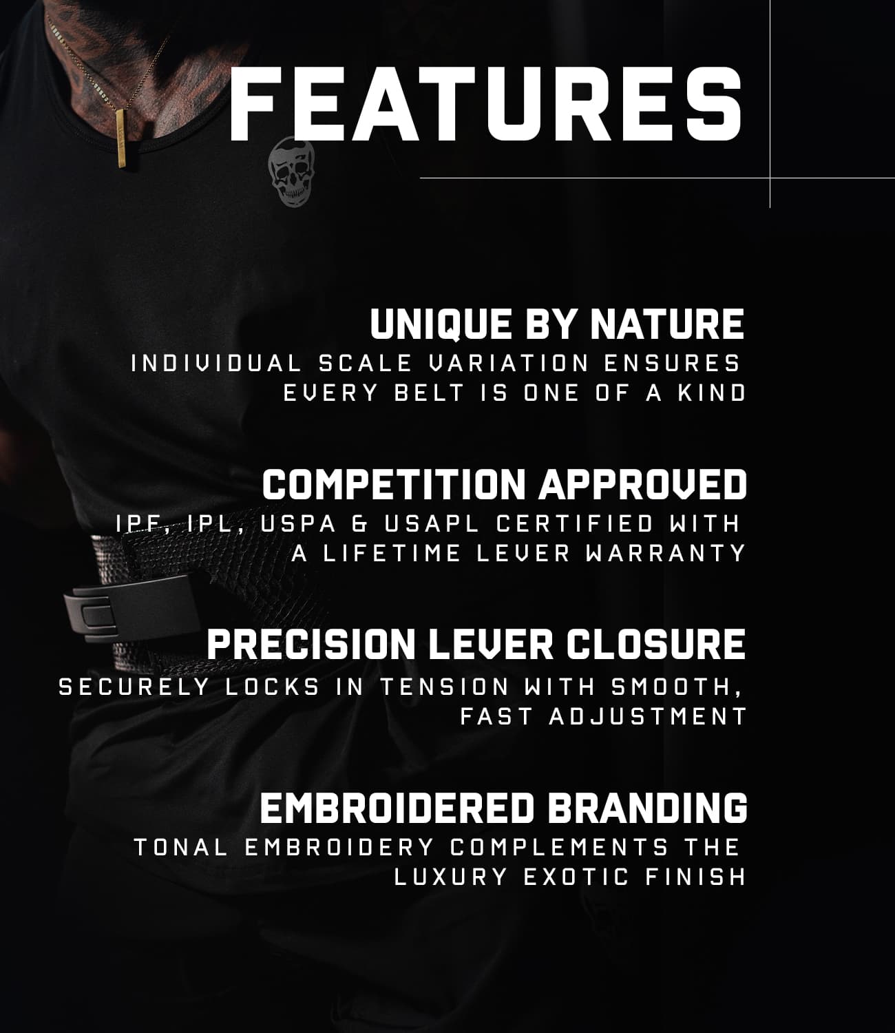 Introducing the White Python Lever Belt; part of Gymreapers’ first-ever exotic belt collection. With polished nickel hardware and a textured ivory pattern, this belt is the embodiment of rare luxury and performance.