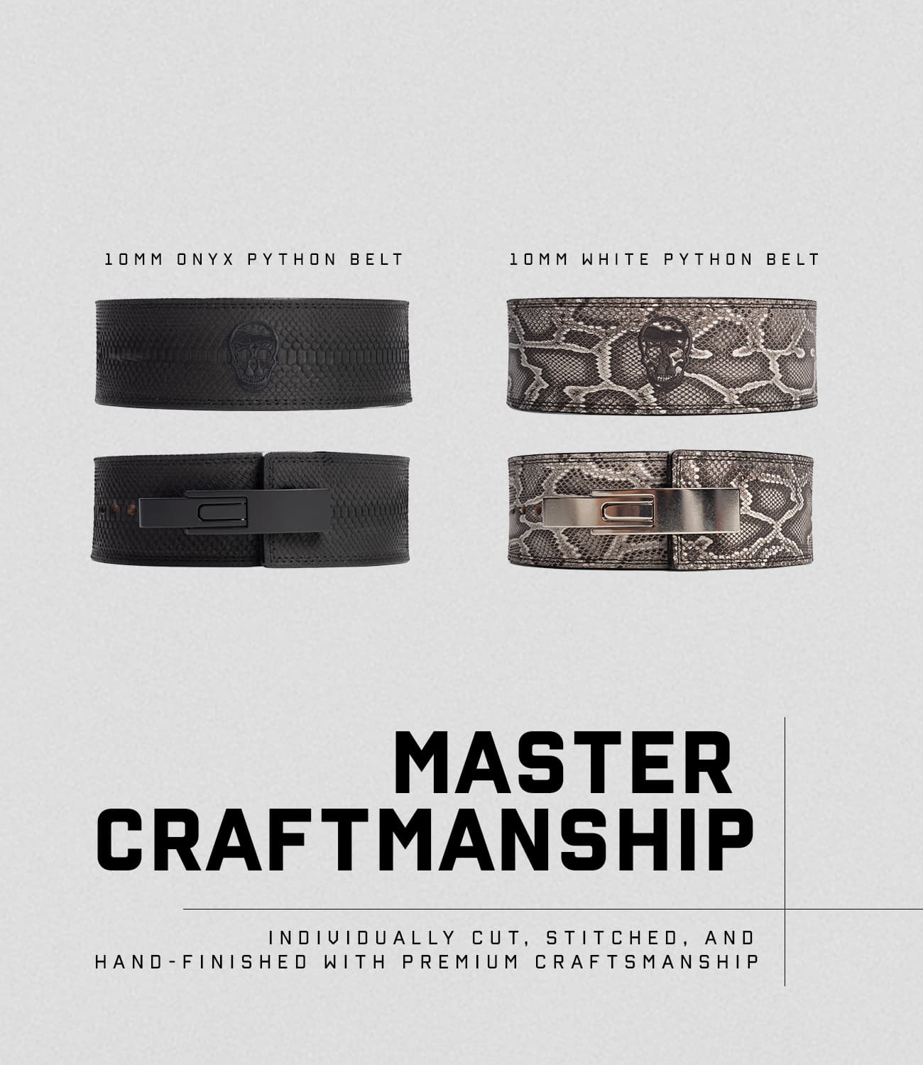 Constructed from 100% genuine python hide paired with a reinforced 10MM leather core, each belt is cut from rare and responsibly sourced skins large enough to achieve a seamless, continuous panel — a sourcing challenge that makes this release exceptionally limited.
