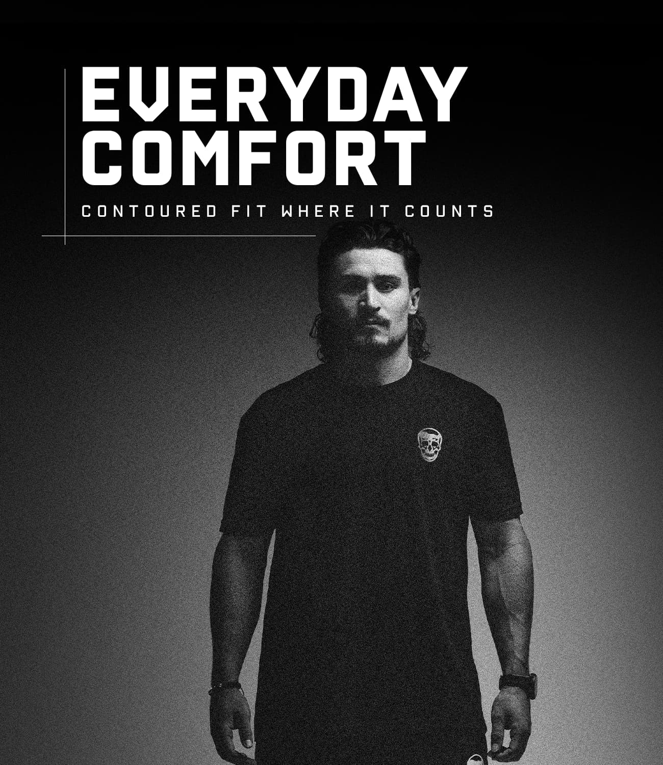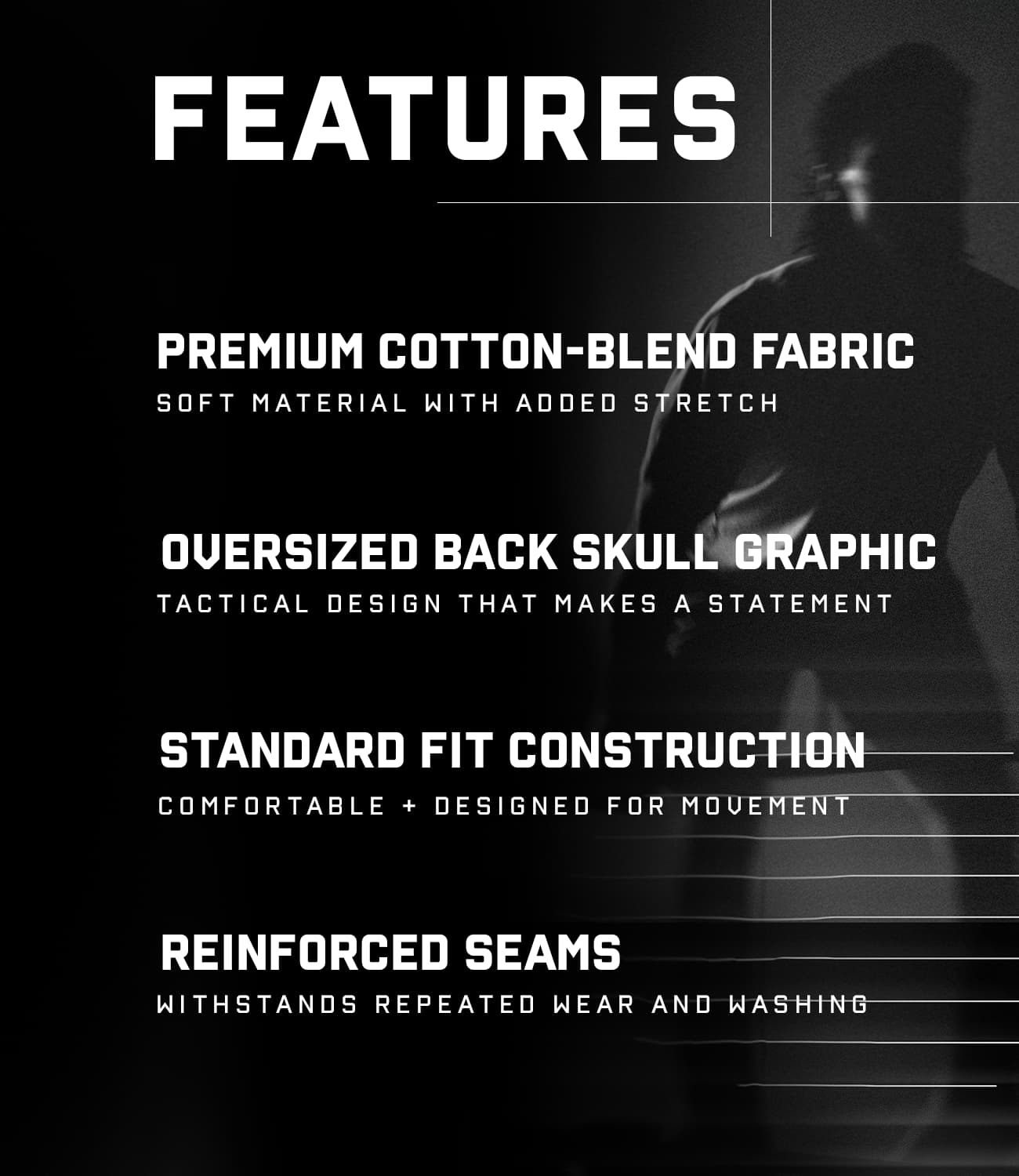 The Static Ops Tee is a lightweight, breathable athletic shirt designed for gym training and everyday wear. Featuring a clean chest graphic and bold skull print on the back, this standard-fit tee offers a soft cotton-poly blend with flexible sleeves for unrestricted movement. Ideal for lifting, conditioning, or daily errands, the Static Ops Tee combines tactical design with all-day comfort.