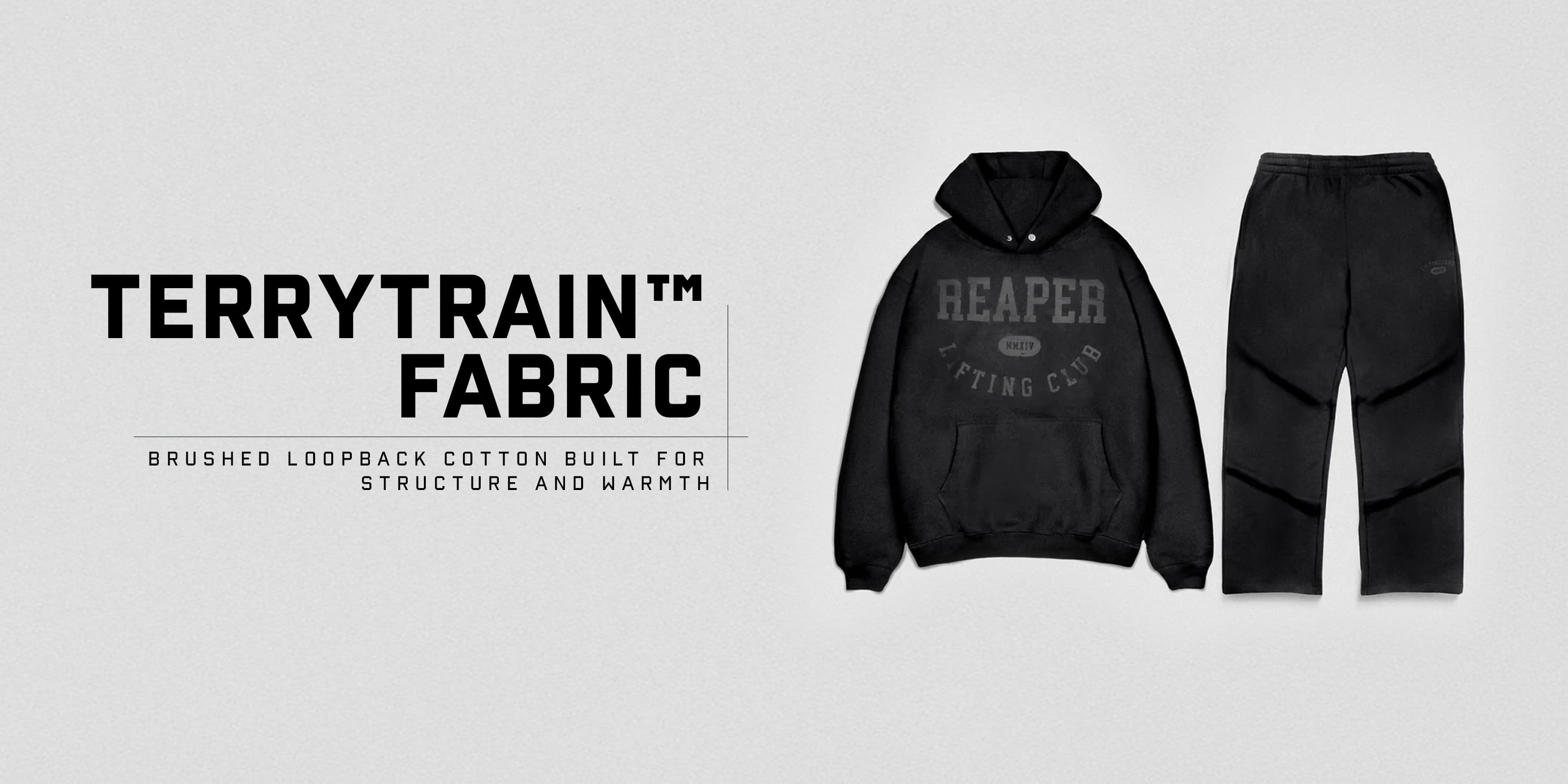 - TerryTrain™ heavyweight cotton with brushed loopback interior
