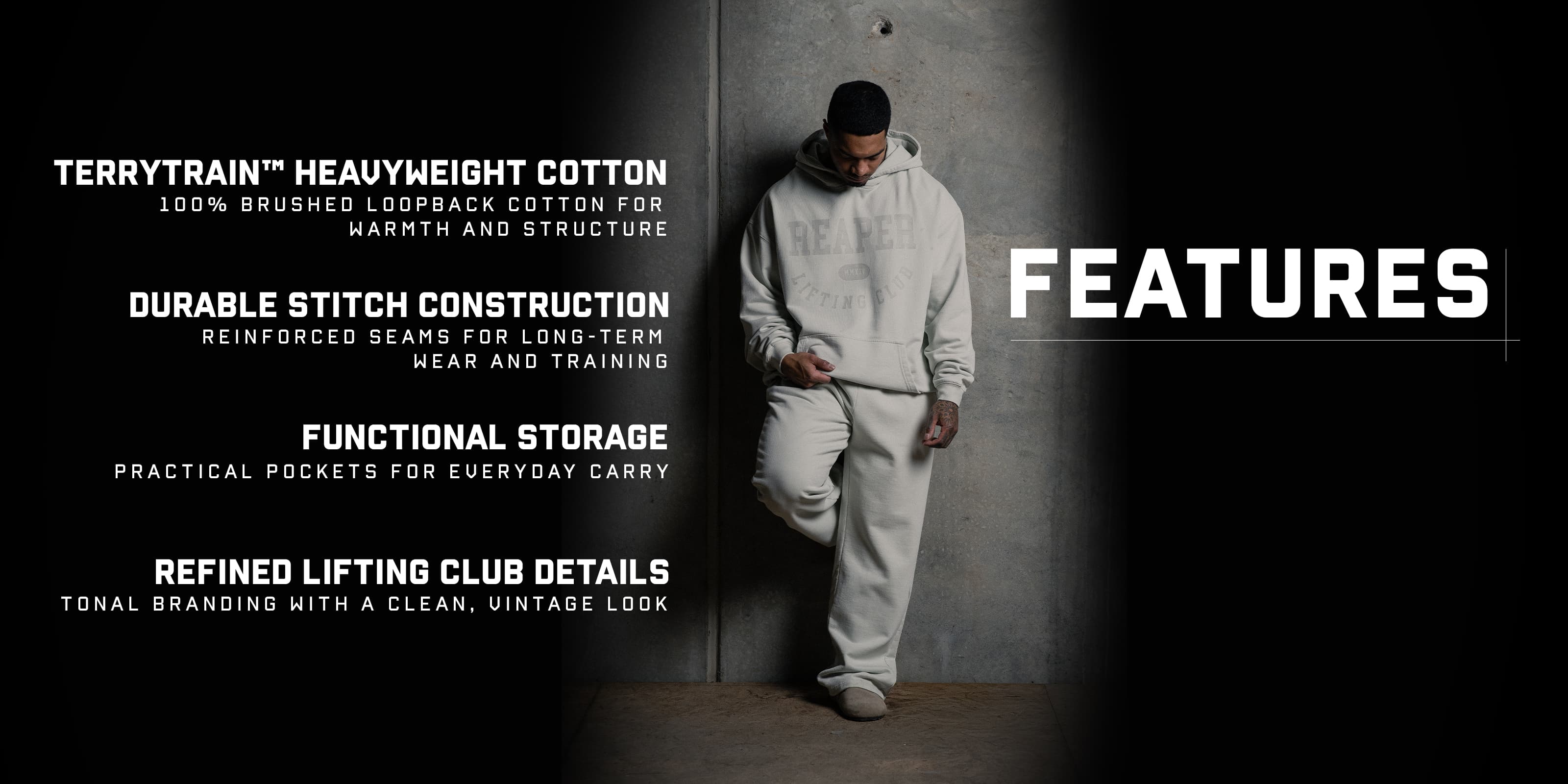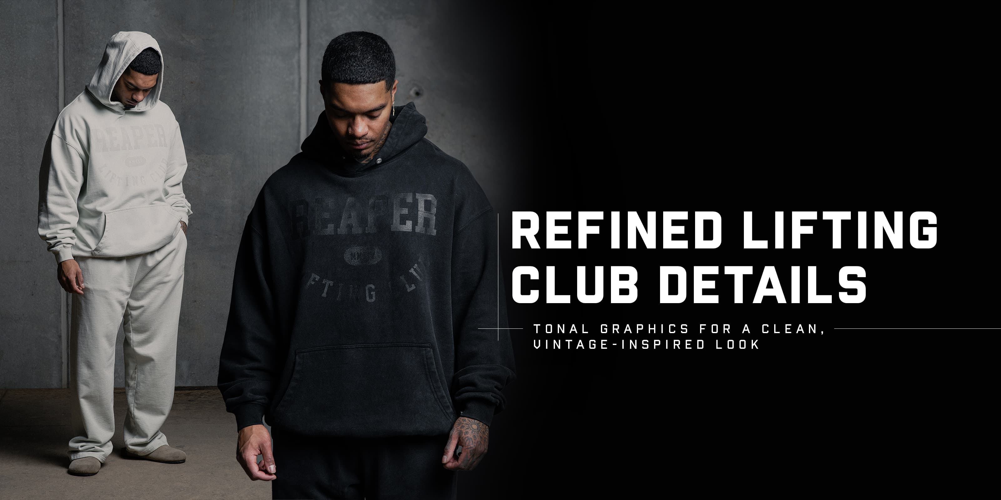 - Tonal Reaper Lifting Club graphics for a subtle, vintage look